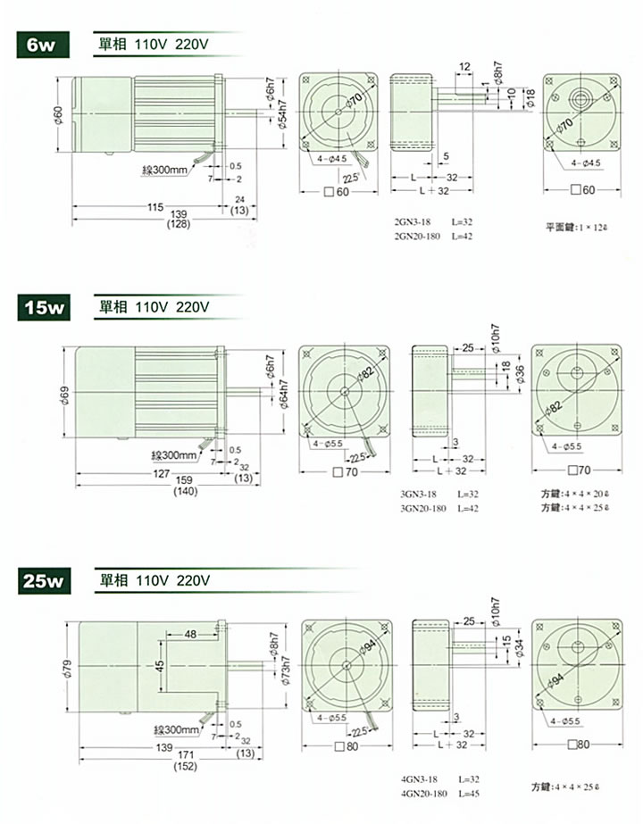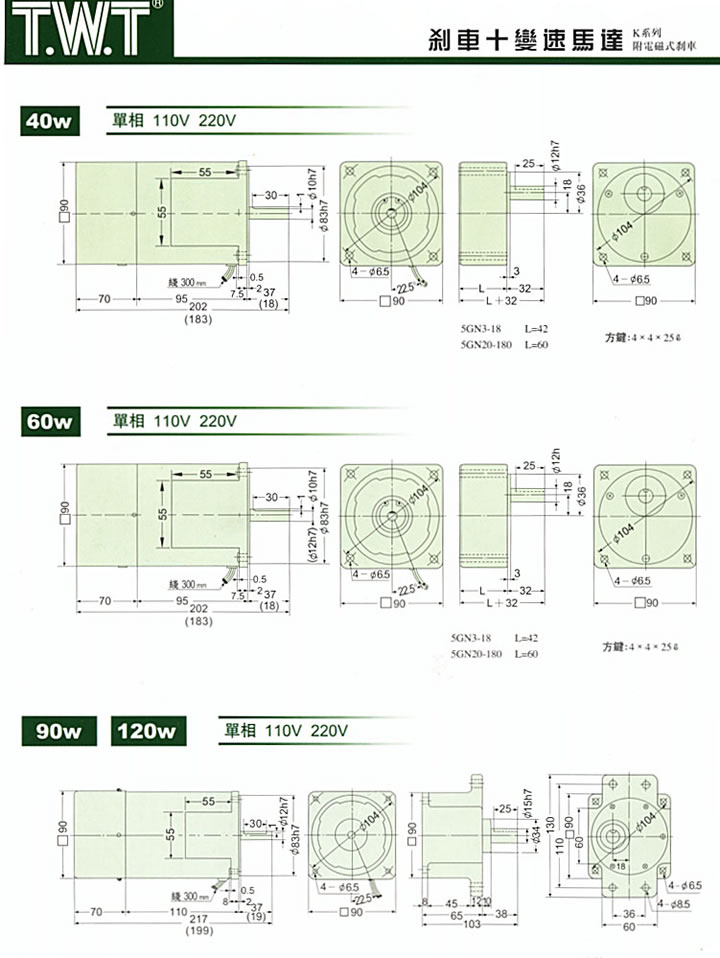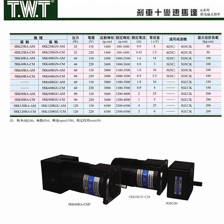 马力:25W~150W电压:单相 100V~110V;200V~220V变速范围:90~1350RPM特长: * 因配用速度控制器,可以调整广范围的变速 (50Hz…..90~1350转/分;60Hz…..90~1700转/分)。 * 可按需求选择变速、制动、转换正.反转、慢速起动、慢速减速等多种複杂的运转程序。 * 内部备有转速传感器,实行回授控制,因此电源频率有变化,其规定转数绝无变化。